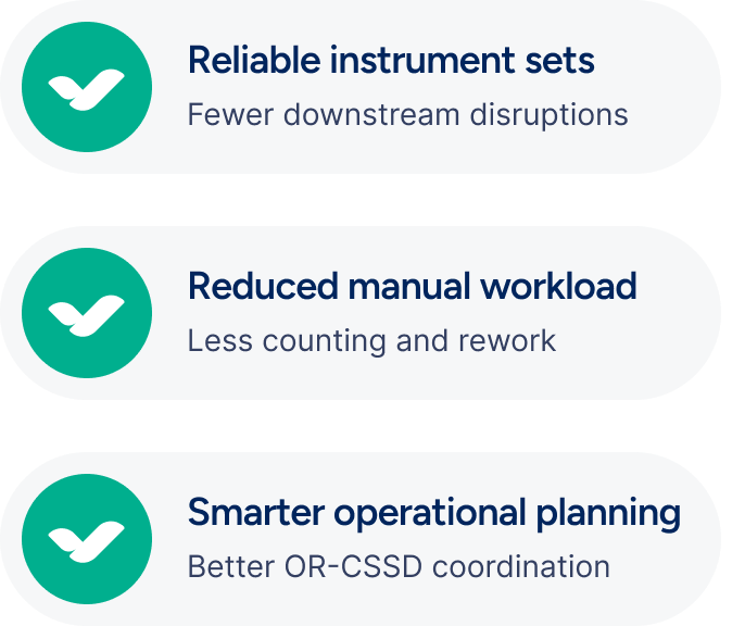 Developed in close collaboration with hospitals to align seamlessly with real operating room and sterile processing workflows.